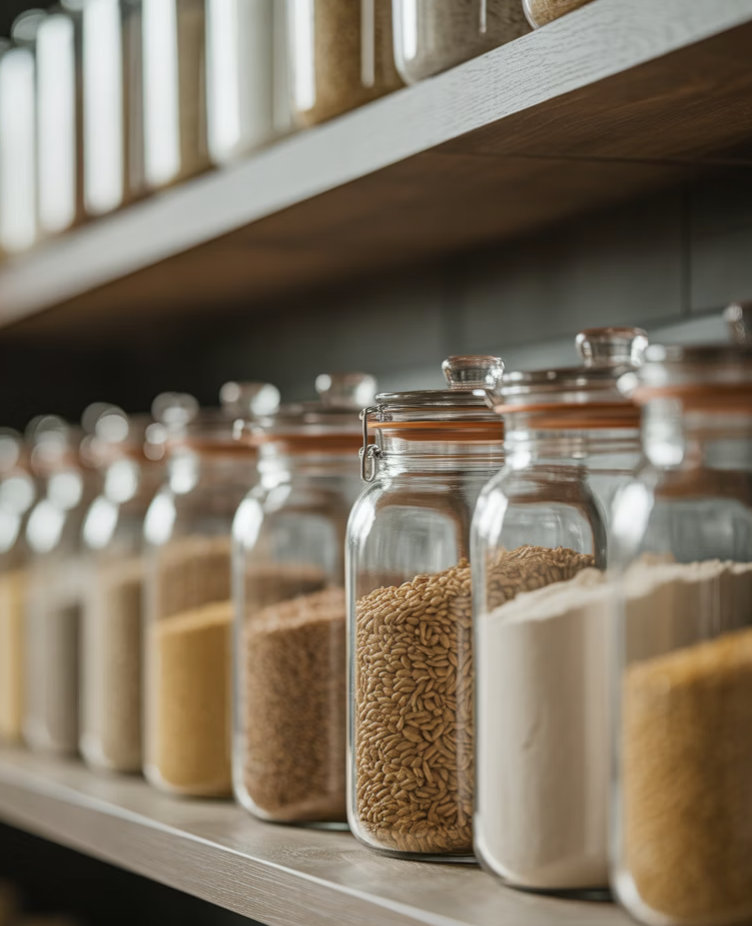 가장 좋은 해결책은 모든 건조 식재료를 ‘유리병’이나 ‘플라스틱 밀폐용기’에 옮겨 담아 보관하는 것입니다. 이렇게 완벽하게 밀봉하면, 외부에서 벌레가 침투하는 것을 원천적으로 차단할 수 있고, 혹시라도 식재료 자체에 알이 묻어있었더라도 다른 곳으로 퍼져나가는 것을 막을 수 있는 최고의 방어벽이 됩니다.