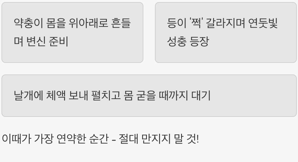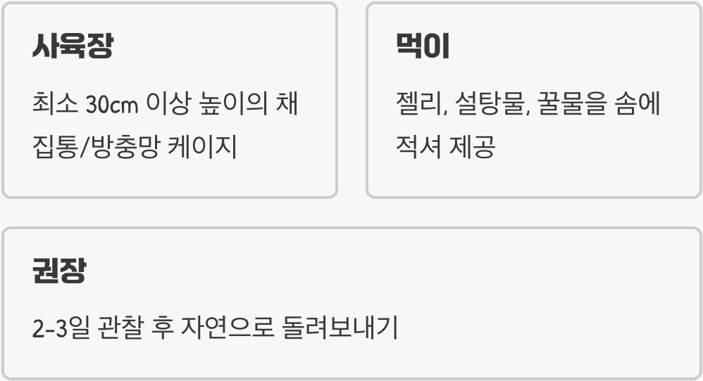 집으로 데려온 약충에게 지금 가장 필요한 것은 먹이나 물이 아닙니다. 바로 아무런 방해 없이, 안전하게 허물을 벗고 날개를 말릴 수 있는 ‘안정적인 공간’입니다. 크고 화려한 사육장보다, 오히려 간단한 환경이 성공률을 높이는 최고의 해결책입니다.